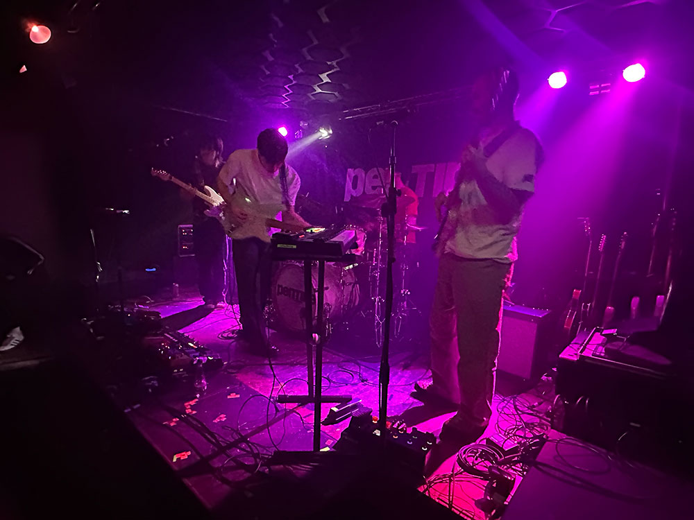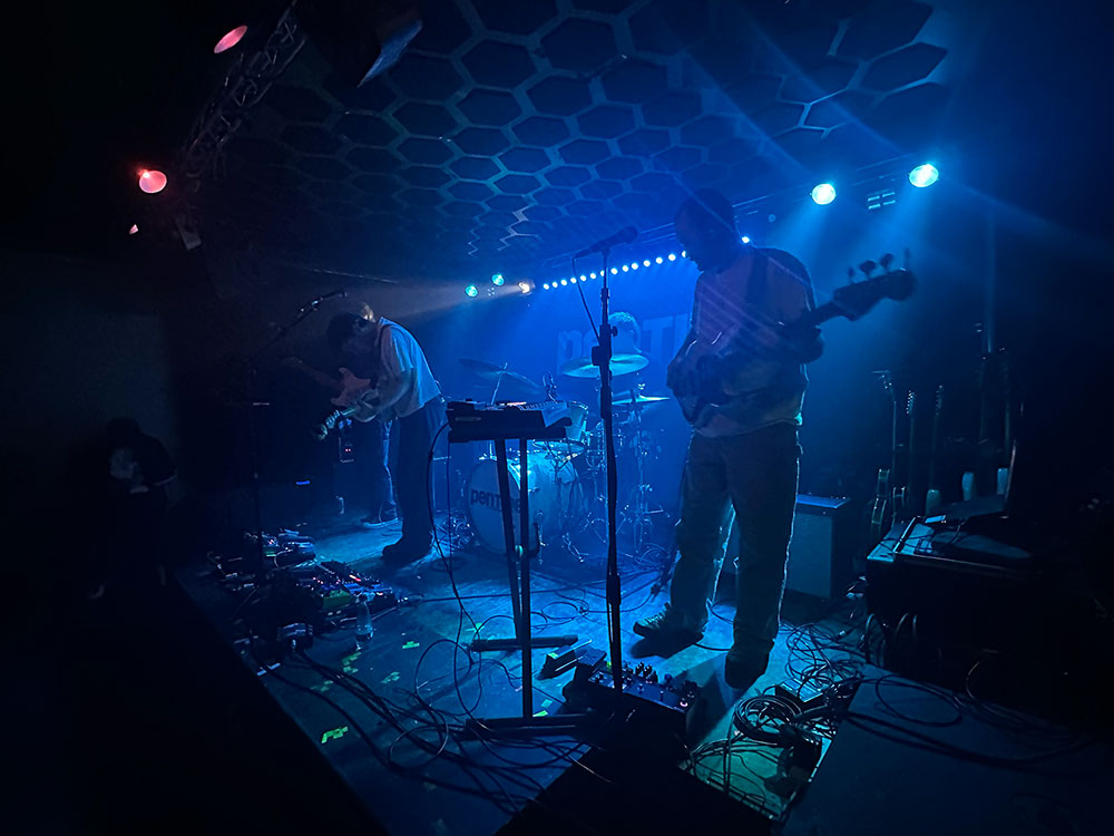 Pentire is a four-piece indie band from Herefordshire. Listed as known for their “post-jangle” pop, a description I’ve heard before and they certainly live up to that and more but they are as much indie as pop, pop is a term overused just because tracks have upbeat major optimistic chords. It was upbeat, it was optimal at times and rousing, and the crowd was eating it up.