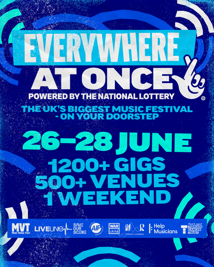 There press release states: “Taking place on what would have been the Glastonbury Festival weekend of 26 to 28 June 2026, hundreds of grassroots music venues across the country will unite for Everywhere At Once. For one extraordinary weekend, venues from Inverness to Penzance will stand shoulder-to-shoulder, transforming towns, cities and high streets into the biggest nationwide stage the UK has ever seen. Major artists, touring acts and the most exciting emerging local talent will perform in the spaces that have launched generations of musicians.This is not a festival in a field. It’s a festival on your doorstep, no tent required. Forget the trek, the traffic and the campsites. This summer’s most exciting live music experience is coming to a venue near you.”