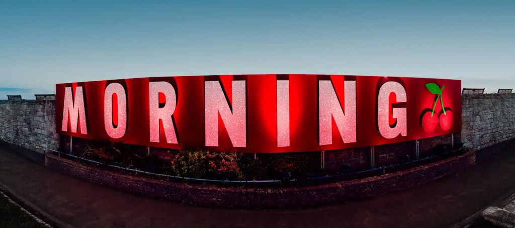 Last years sign was just the word ‘Morning’ with a graphic of cherries. Quickly identified as ‘Kings of Leon’ who were then joined by ‘Queens of the Stone Age’ and a whole host of other amazing acts across the weekend.