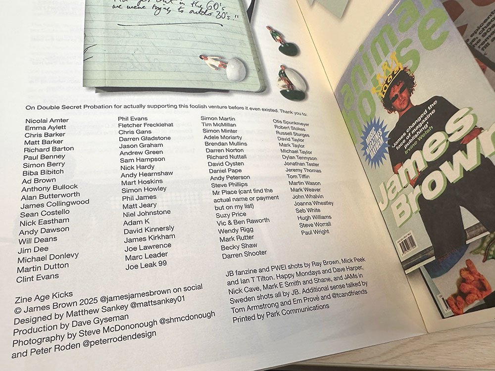 I say I received my copy as for me this started a long time ago, as an avid reader of the NME back in the nineties and a regular bought Loaded I’ve been a social media follower of James Brown for years. When mention of this idea appeared online and the mention of support for the project was cast out I responded quickly and put my money where my mouth was and basically bought my copy while it was just a tsunami of ideas in one man’s head. Hence my name is listed in the back under with thanks: